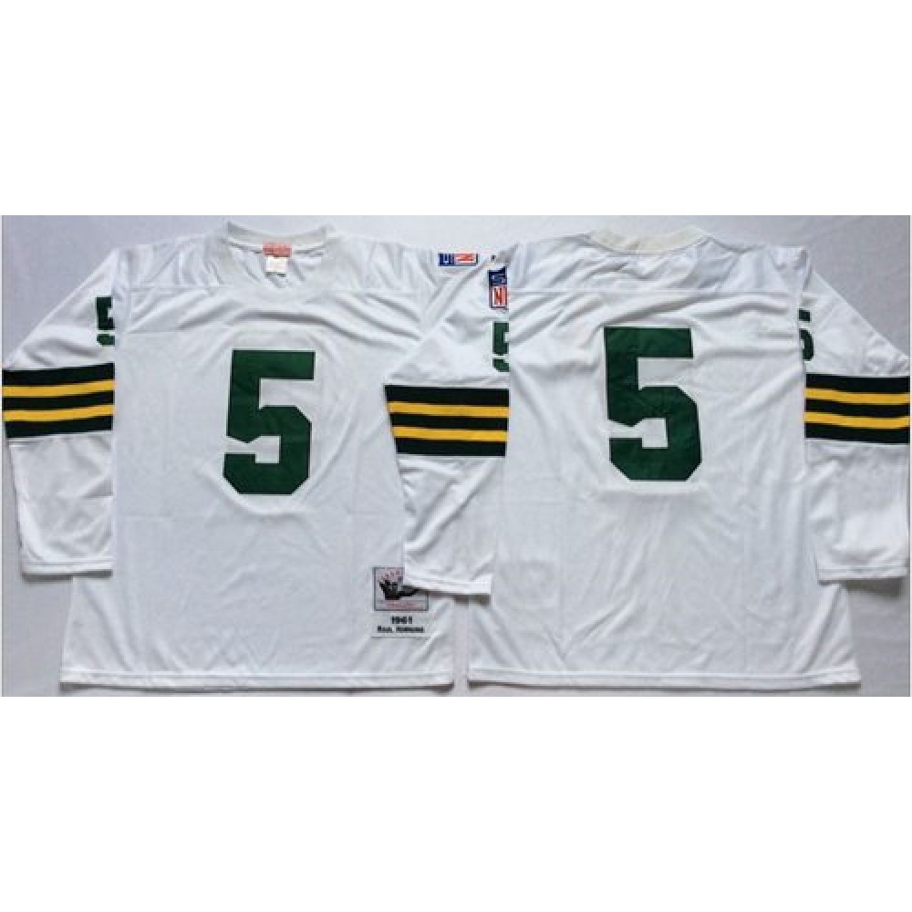 Mitchell And Ness 1961 Packers #5 Paul Hornung White Throwback Stitched NFL Jersey