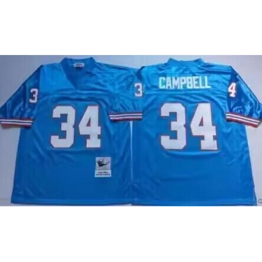 Men's Houston Oilers/Tennessee Titans #34 Earl Campbell Mitchell & Ness Light Blue 1980 Authentic Throwback Retired Player Stitched Jersey
