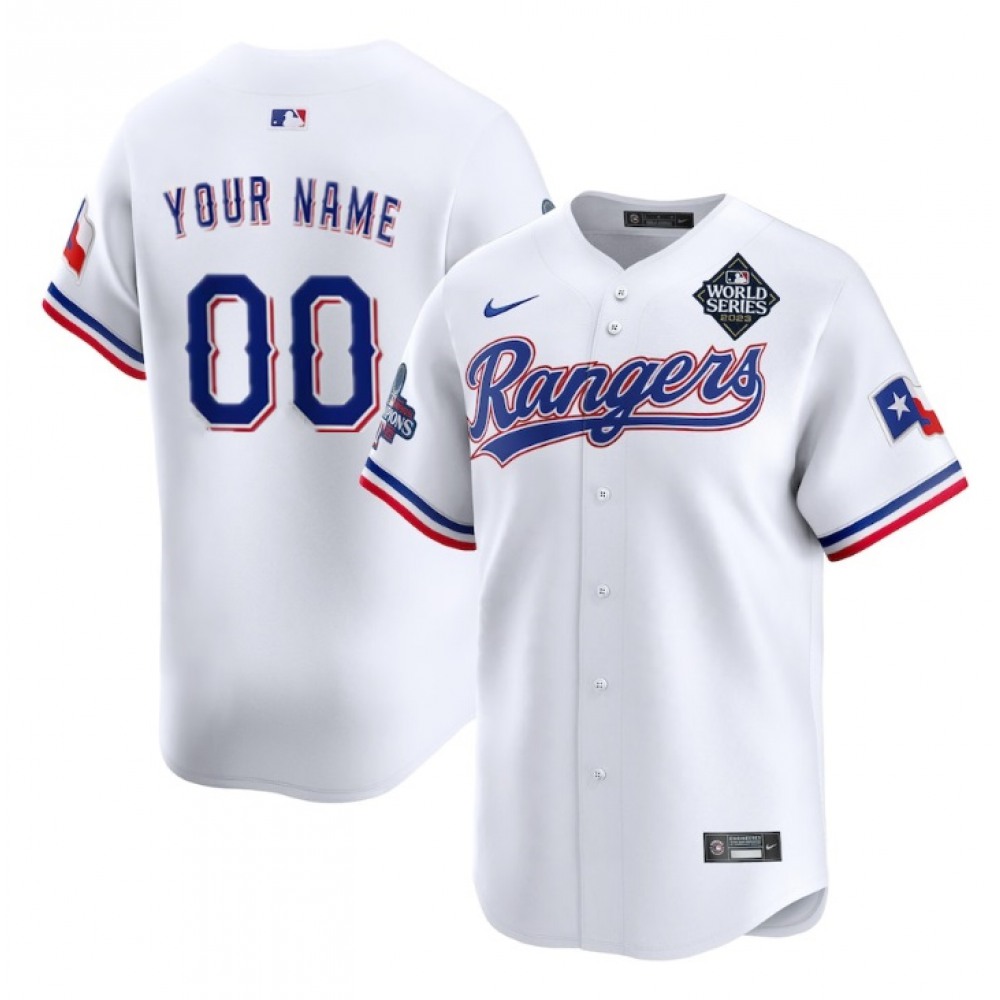 Men's Texas Rangers Customized White 2023 World Series Cool Base Stitched Jersey