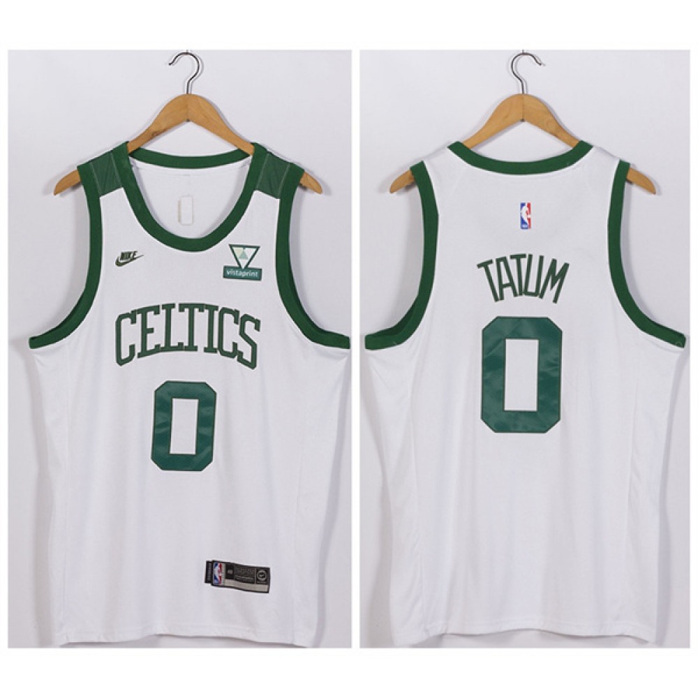 Men's Boston Celtics #0 Jayson Tatum White Vistaprint Patch Stitched Jersey