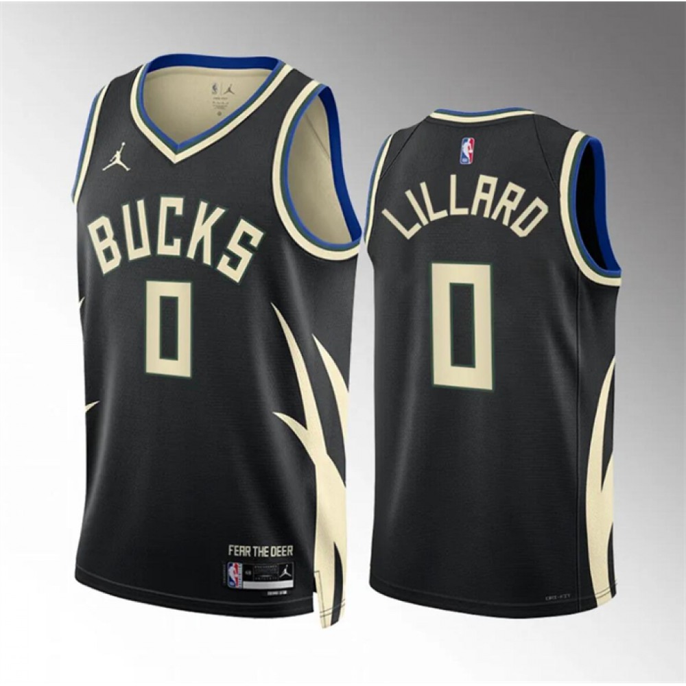 Youth Milwaukee Bucks #0 Damian Lillard Black Stitched Basketball Jersey