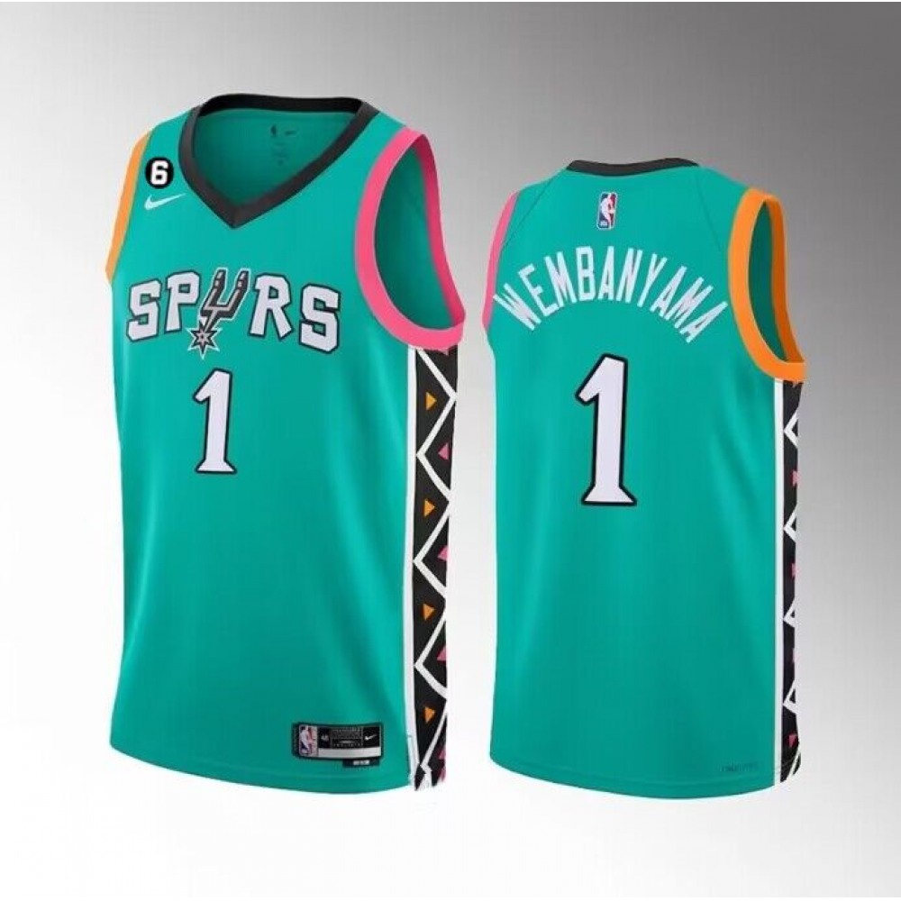 Men's San Antonio Spurs #1 Victor Wembanyama Teal 2022/23 City Edition Swingman With NO.6 Patch Stitched Basketball Jersey
