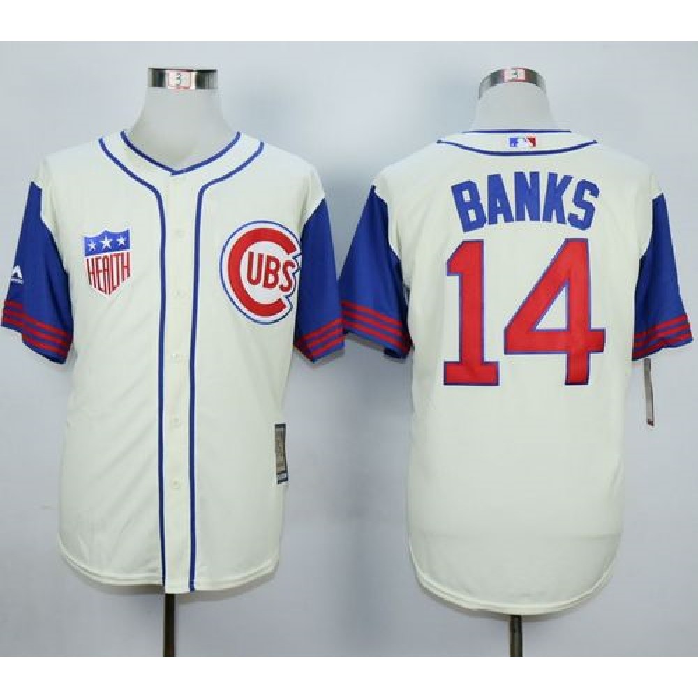 Cubs #14 Ernie Banks Cream/Blue 1942 Turn Back The Clock Stitched MLB Jersey