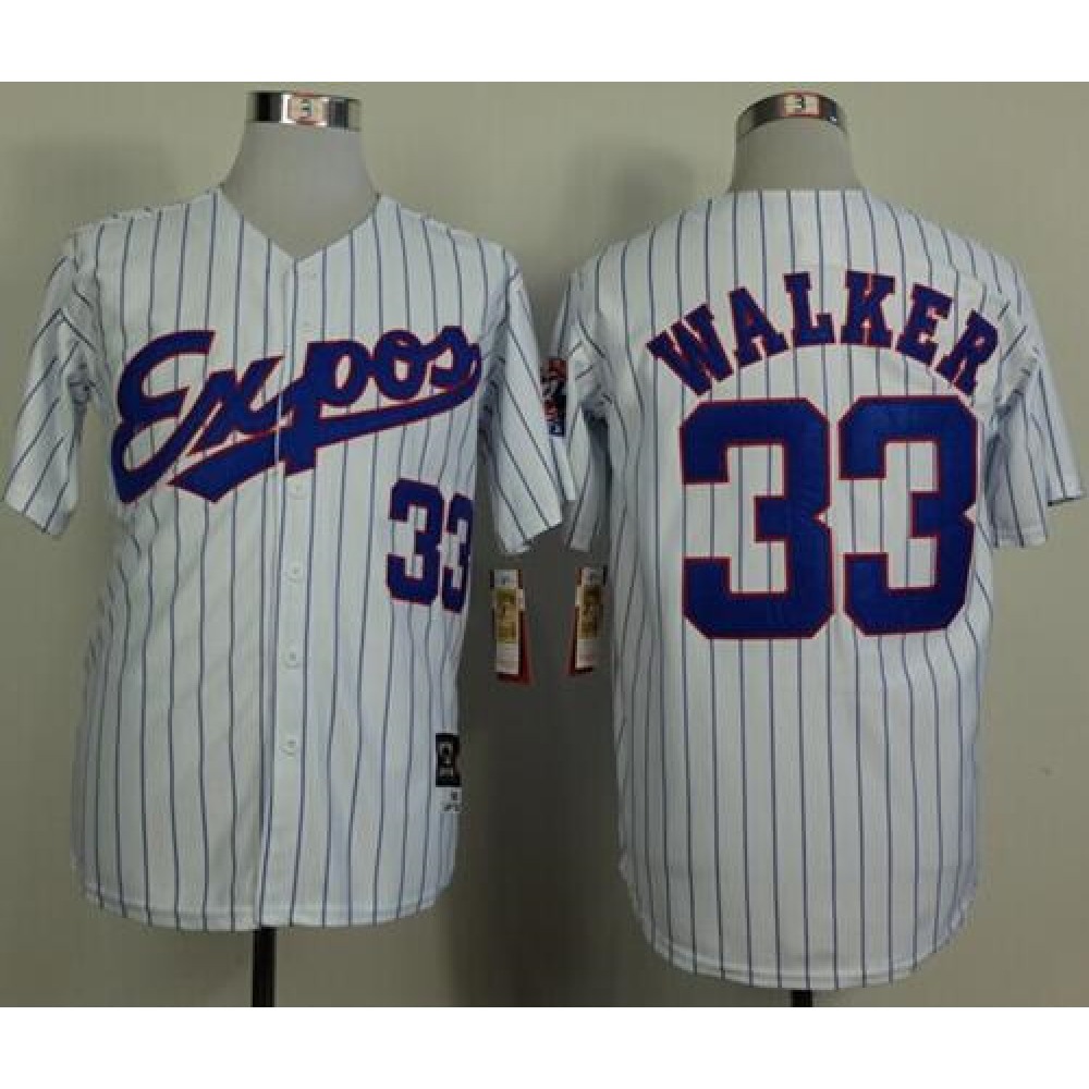 Mitchell And Ness 1982 Expos #33 Larry Walker White(Black Strip) Throwback Stitched MLB Jersey