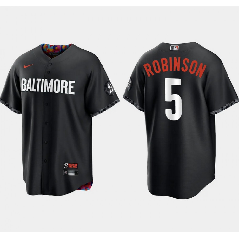 Men's Baltimore Orioles #5 Brooks Robinson Black 2023 City Connect Cool Base Stitched Baseball Jersey