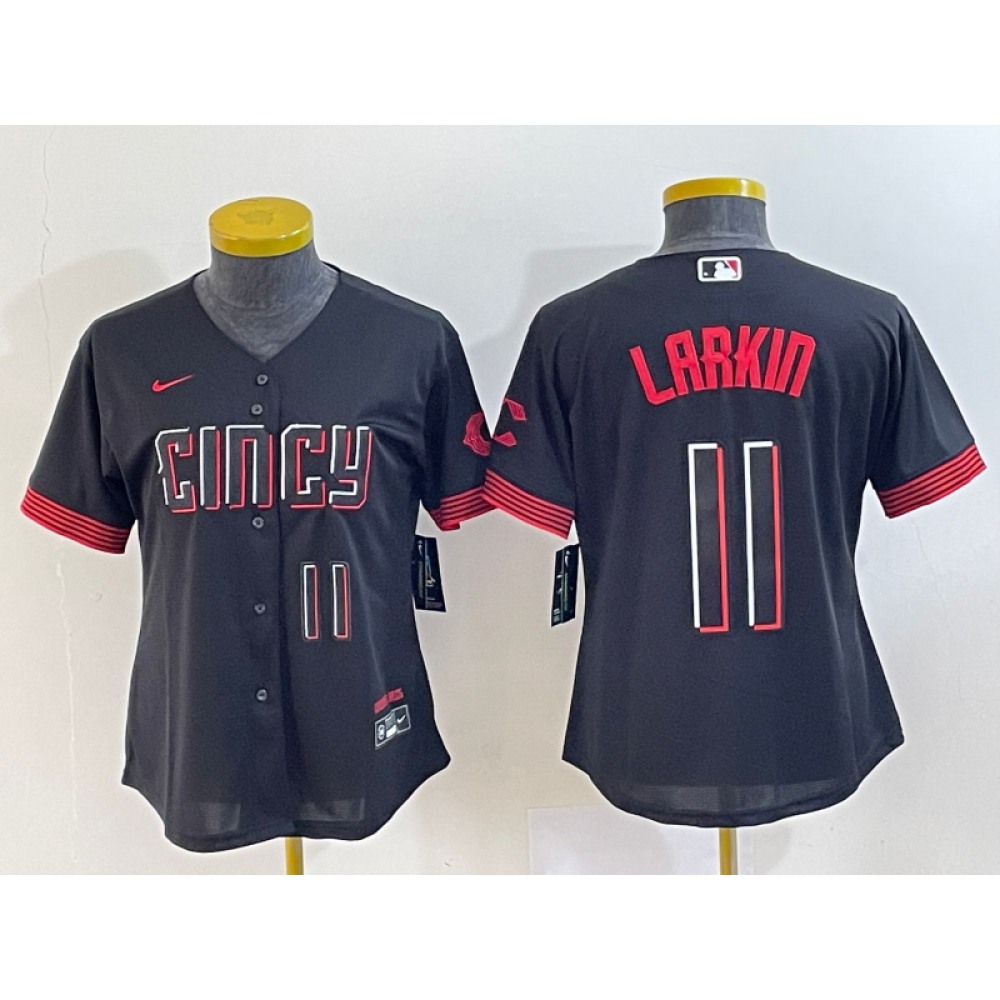Women's Cincinnati Reds #11 Barry Larkin Black 2023 City Connect With Patch Stitched Baseball Jersey(Run Small)