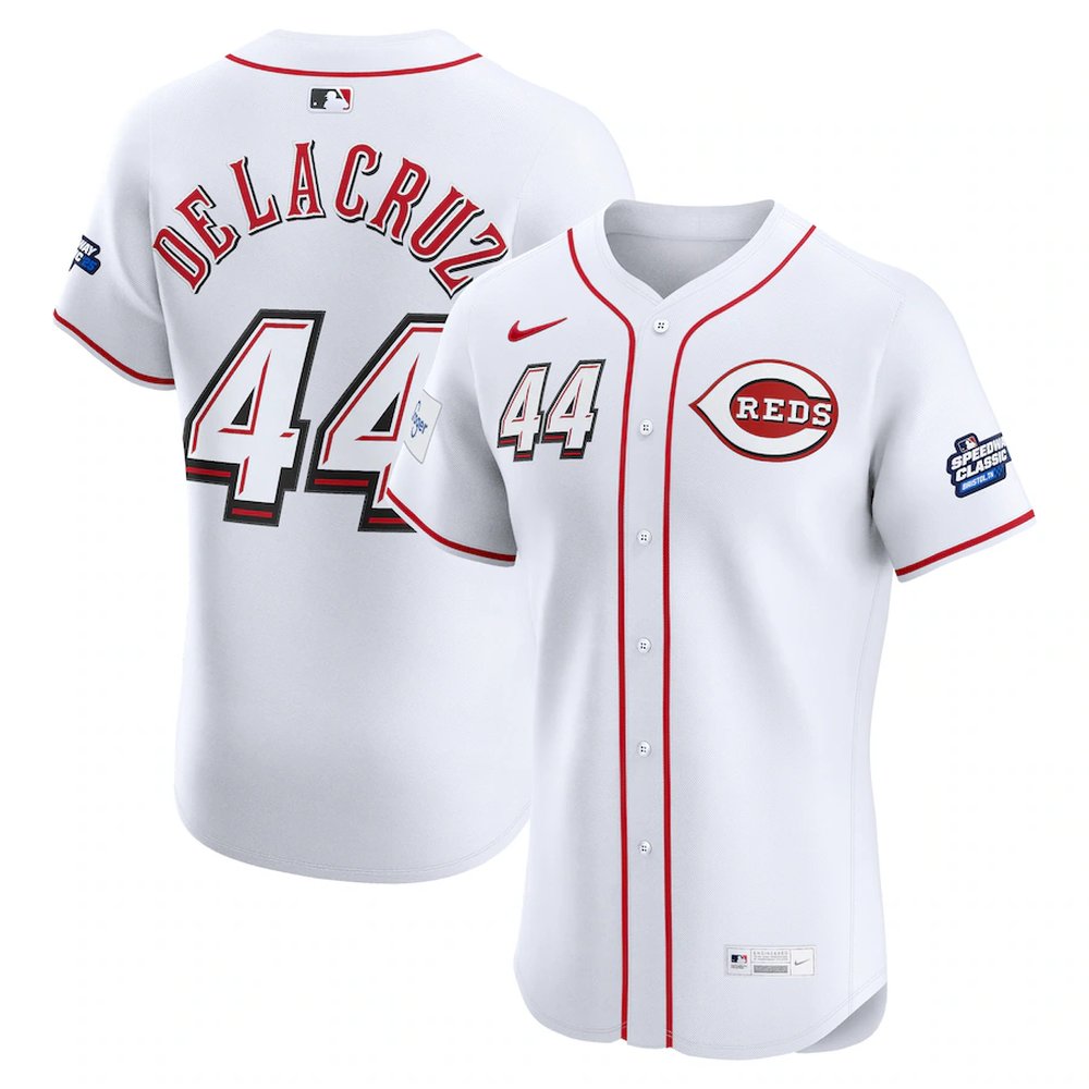 Men's Cincinnati Reds #44 Elly De La Cruz Nike White 2025 MLB Speedway Classic Home Elite Player Jersey
