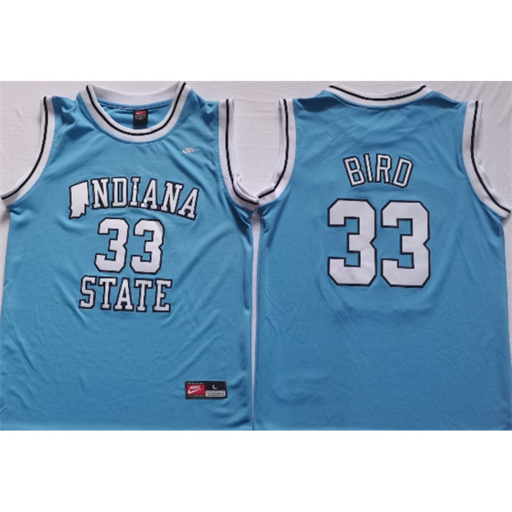 Men's Indiana State Sycamores #33 Larry Bird Blue Stitched Jersey