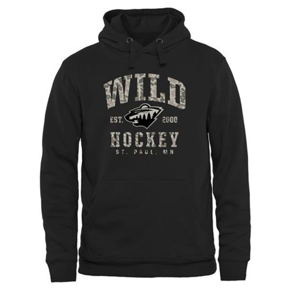 Men's Minnesota Wild Black Camo Stack Pullover Hoodie