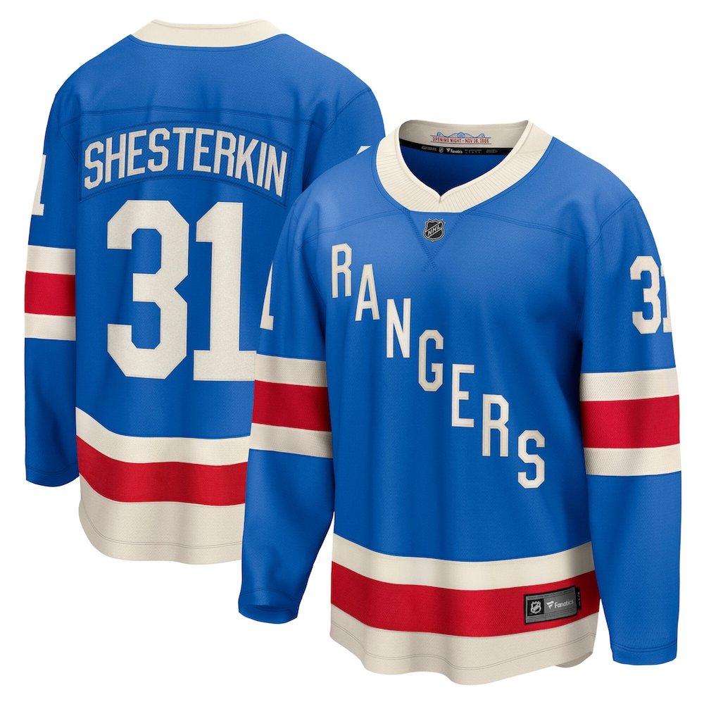 Men's New York Rangers #31 Igor Shesterkin Blue Centennial Breakaway Jersey