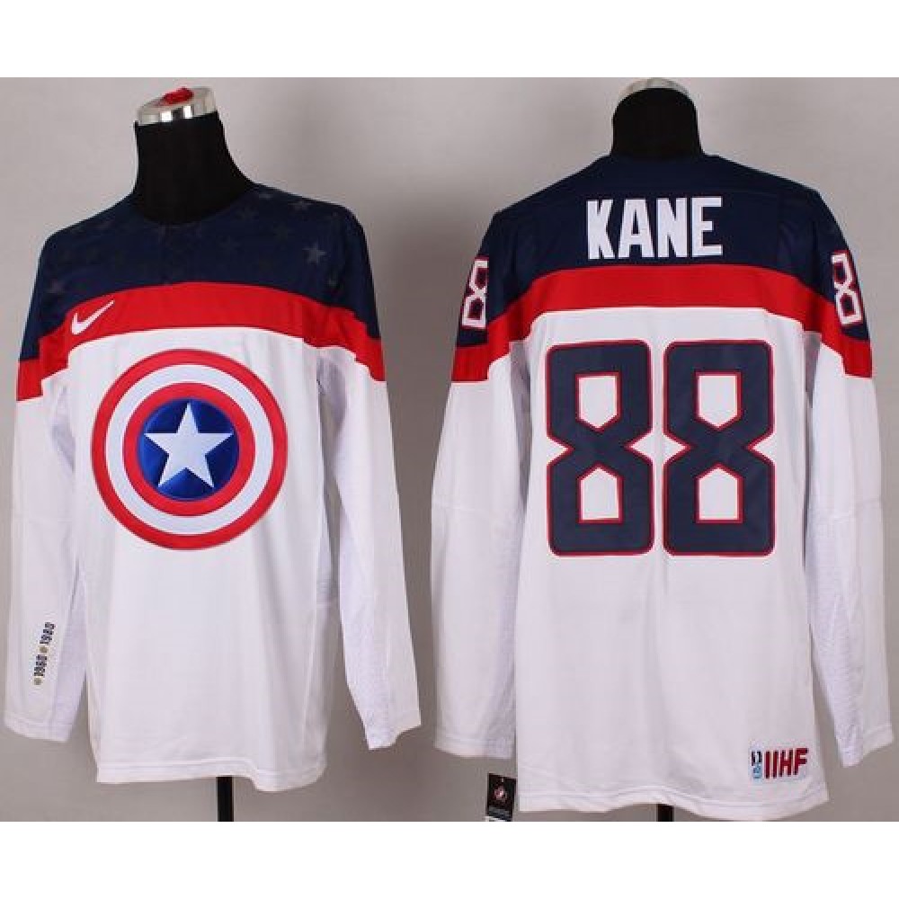Olympic Team USA #88 Patrick Kane White Captain America Fashion Stitched NHL Jersey
