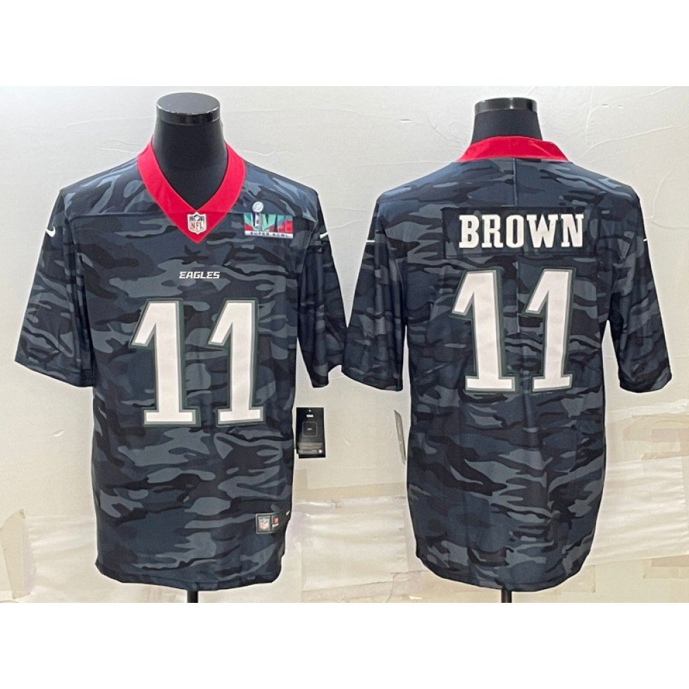 Men's Philadelphia Eagles #11 A. J. Brown Camo Super Bowl LVII Patch Limited Stitched Jersey