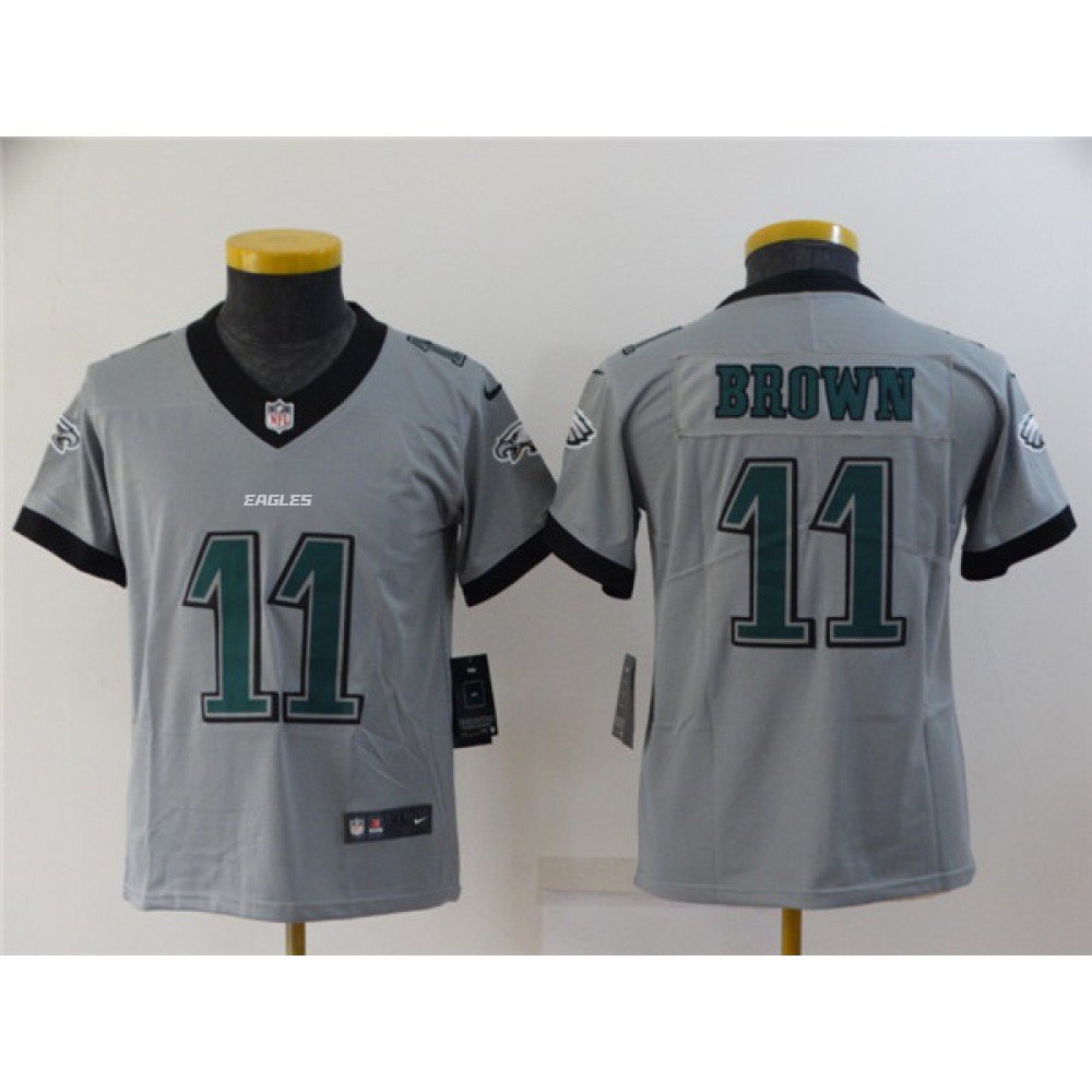 Youth Philadelphia Eagles #11 A. J. Brown Grey Inverted Legend Stitched Football Jersey