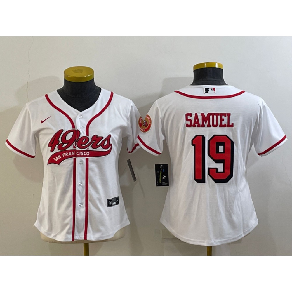 Women's San Francisco 49ers #19 Deebo Samuel New White With Patch Cool Base Stitched Baseball Jersey(Run Small)