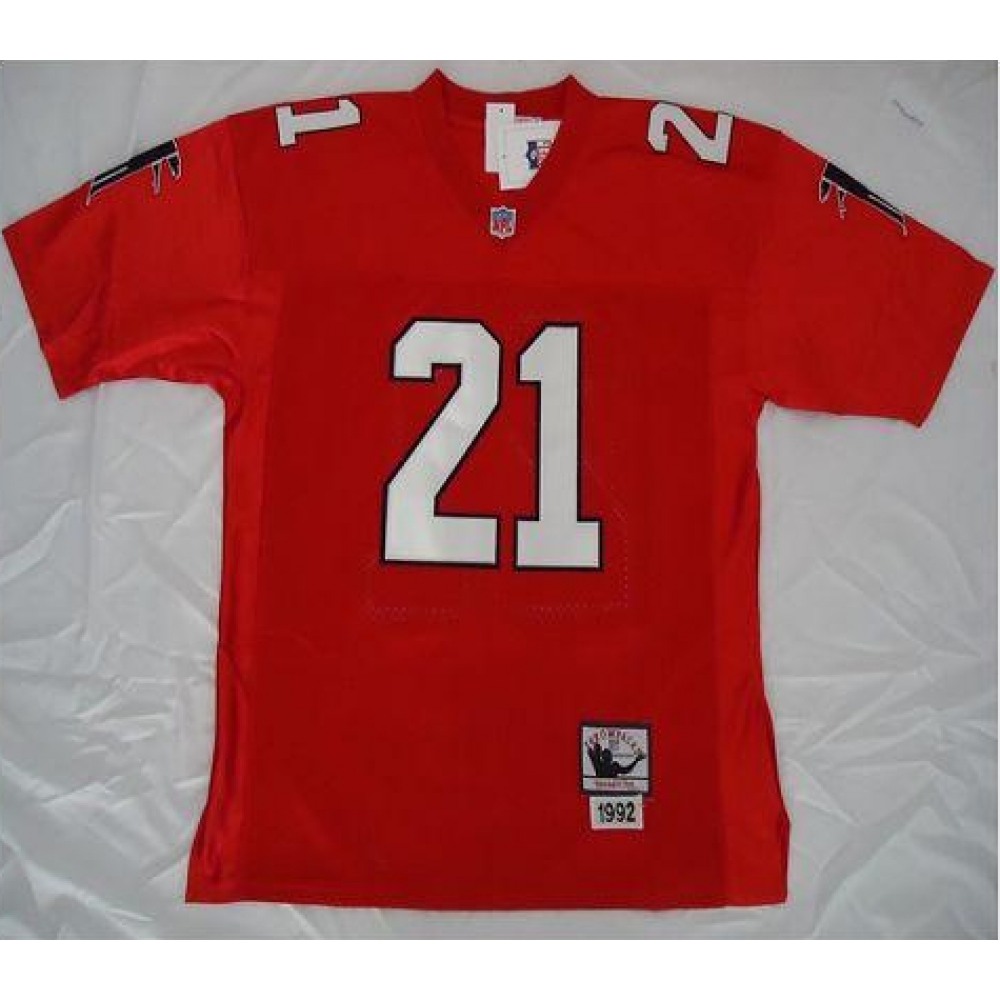 Mitchell And Ness Falcons #21 Deion Sanders Red Throwback Stitched NFL Jersey