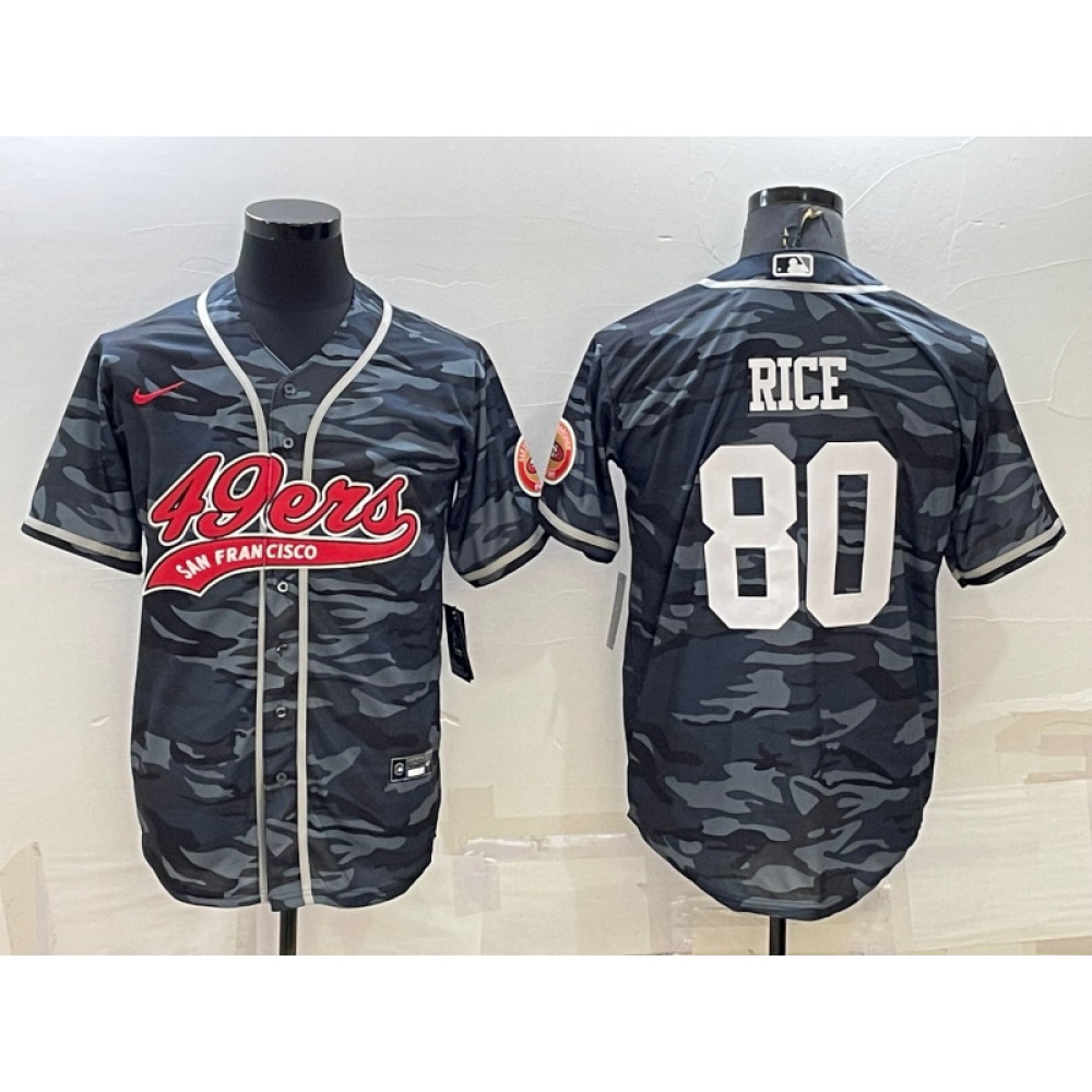 Men's San Francisco 49ers #80 Jerry Rice Grey Camo With Patch Cool Base Stitched Baseball Jersey