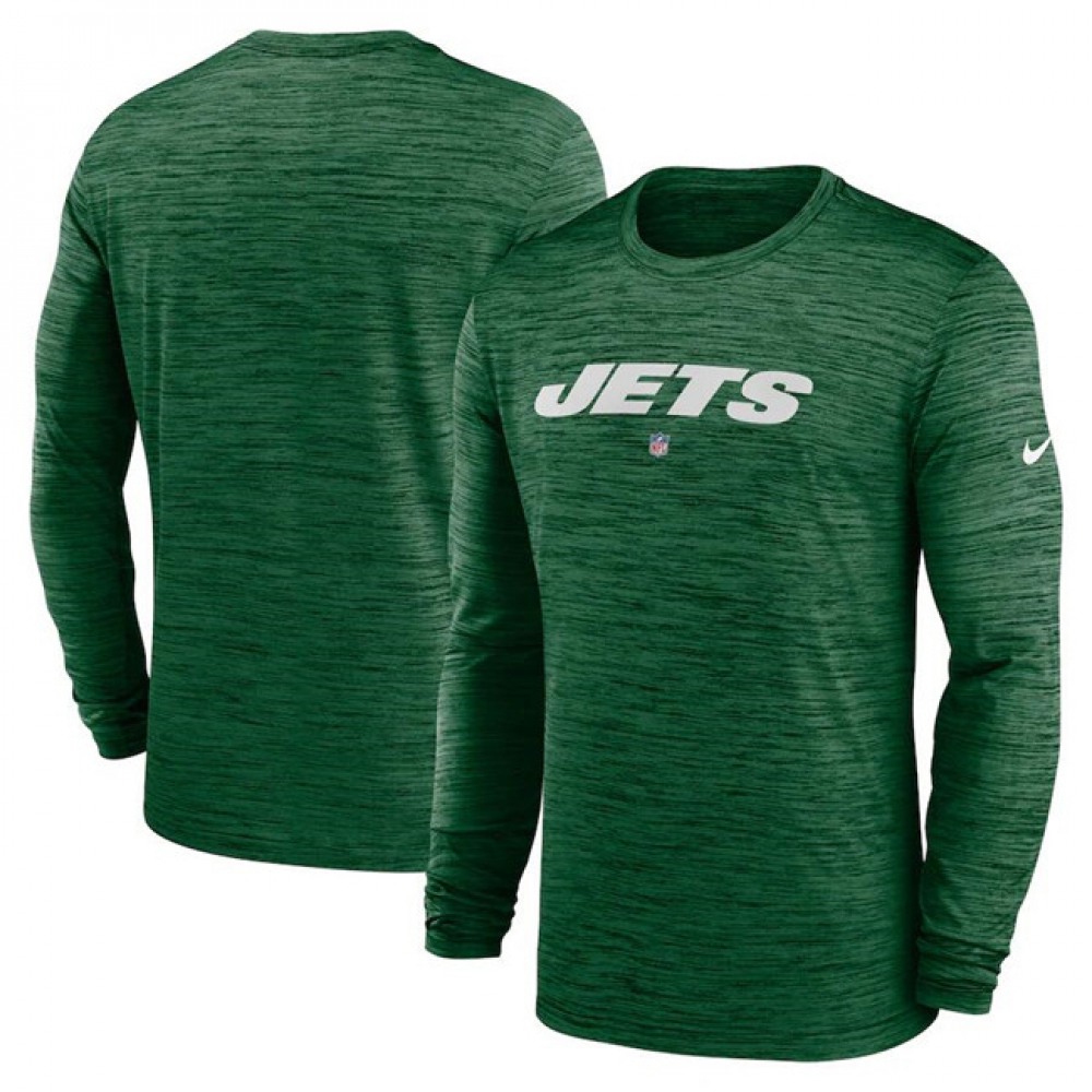 Men's New York Jets Green Sideline Team Velocity Performance Long Sleeve T-Shirt
