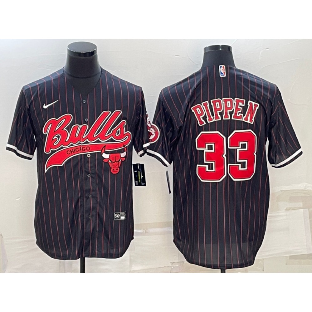 Men's Chicago Bulls #33 Scottie Pippen Black With Patch Cool Base Stitched Baseball Jersey