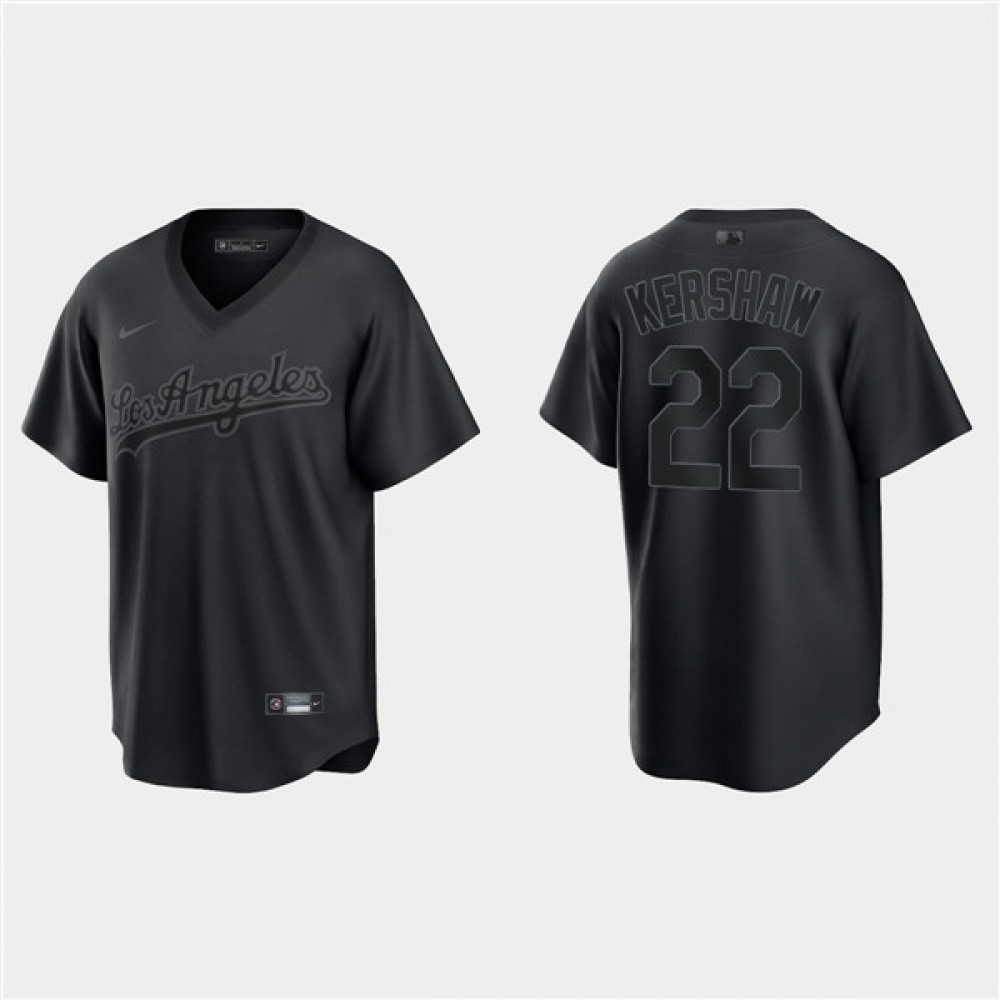 Men's Los Angeles Dodgers #22 Clayton Kershaw Black Pitch Black Fashion Replica Stitched Jersey