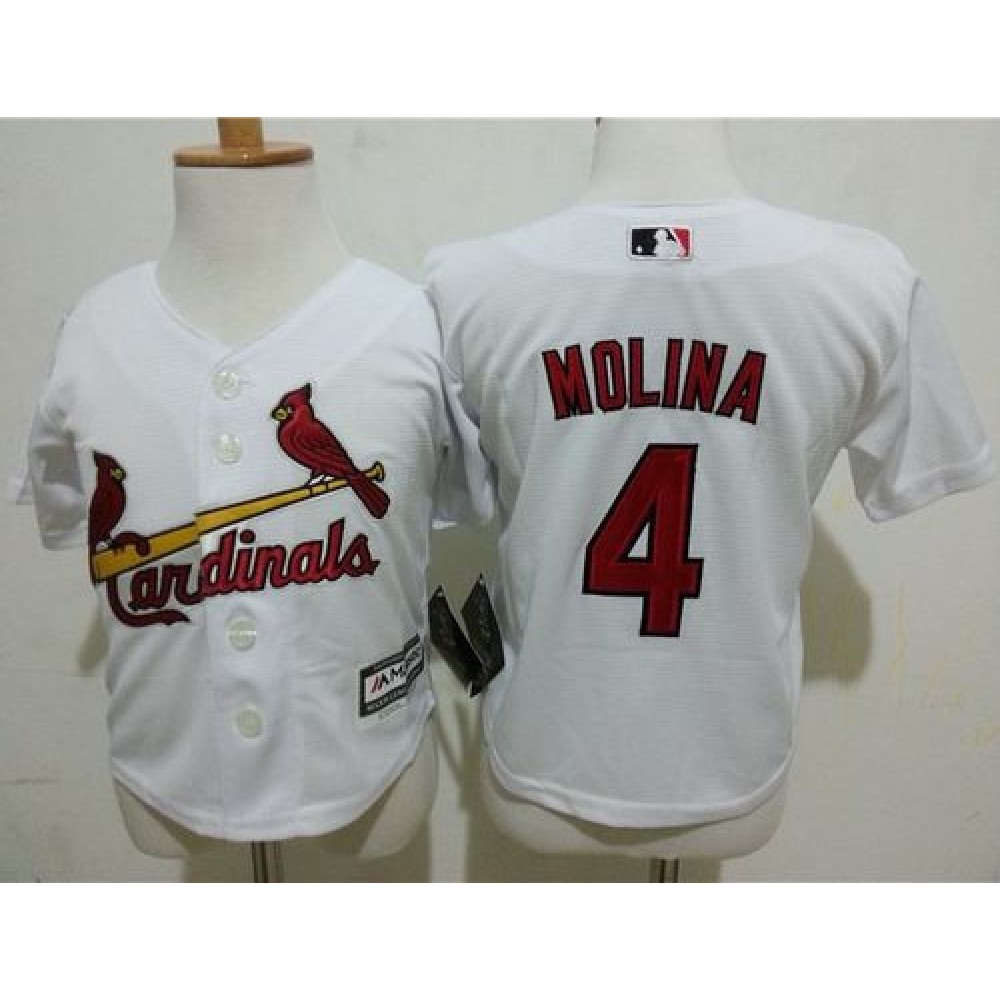 Toddler Cardinals #4 Yadier Molina White Cool Base Stitched MLB Jersey
