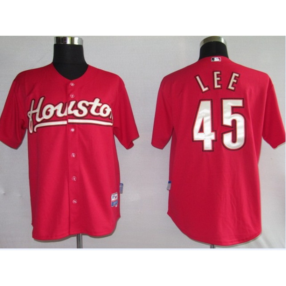 Mitchell and Ness Astros #45 Carlos Lee Red Stitched Throwback MLB Jersey