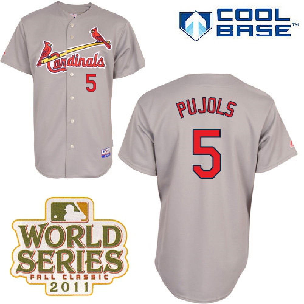 Cardinals #5 Albert Pujols Grey Cool Base 2011 World Series Patch Stitched MLB Jersey