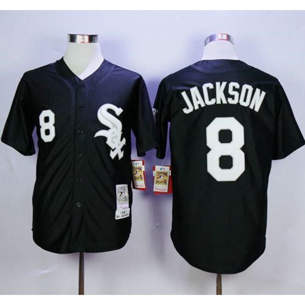 Mitchell and Ness White Sox #8 Bo Jackson Stitched Black Throwback MLB Jersey
