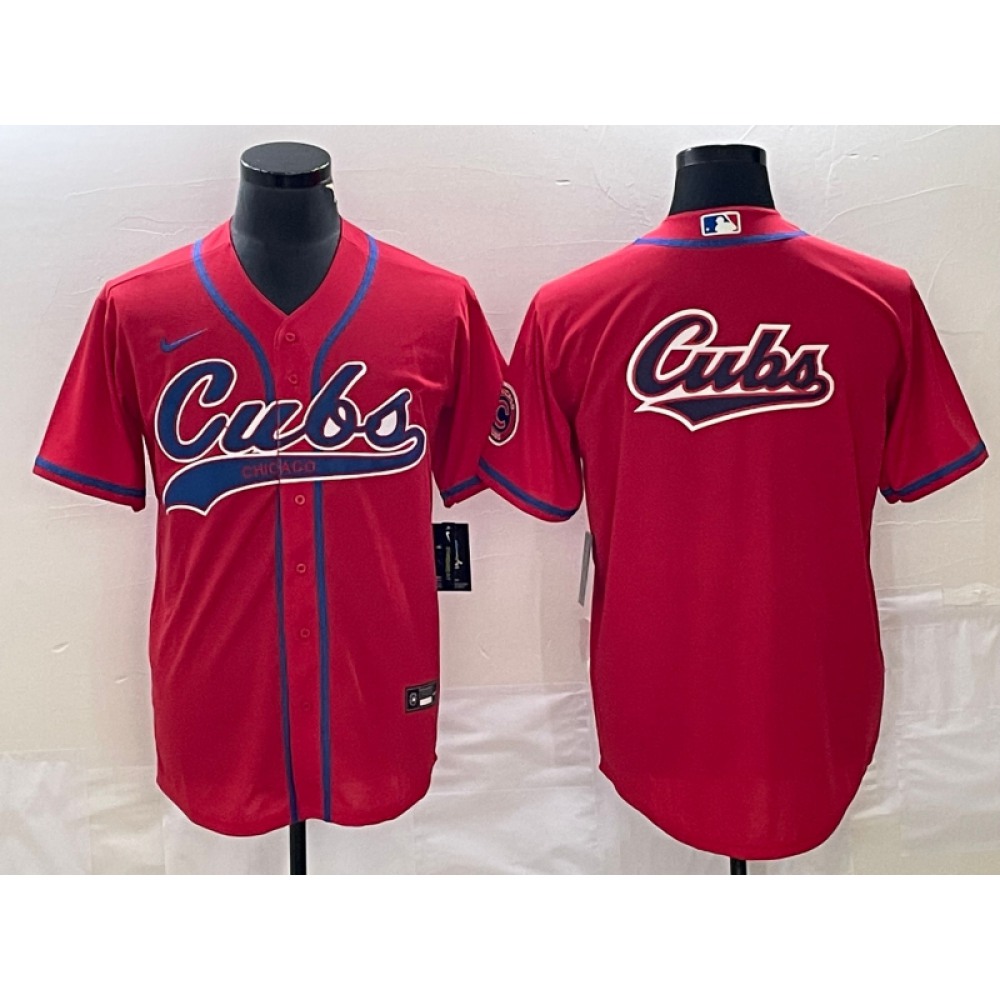 Men's Chicago Cubs Red Team Big Logo Cool Base Stitched Jersey