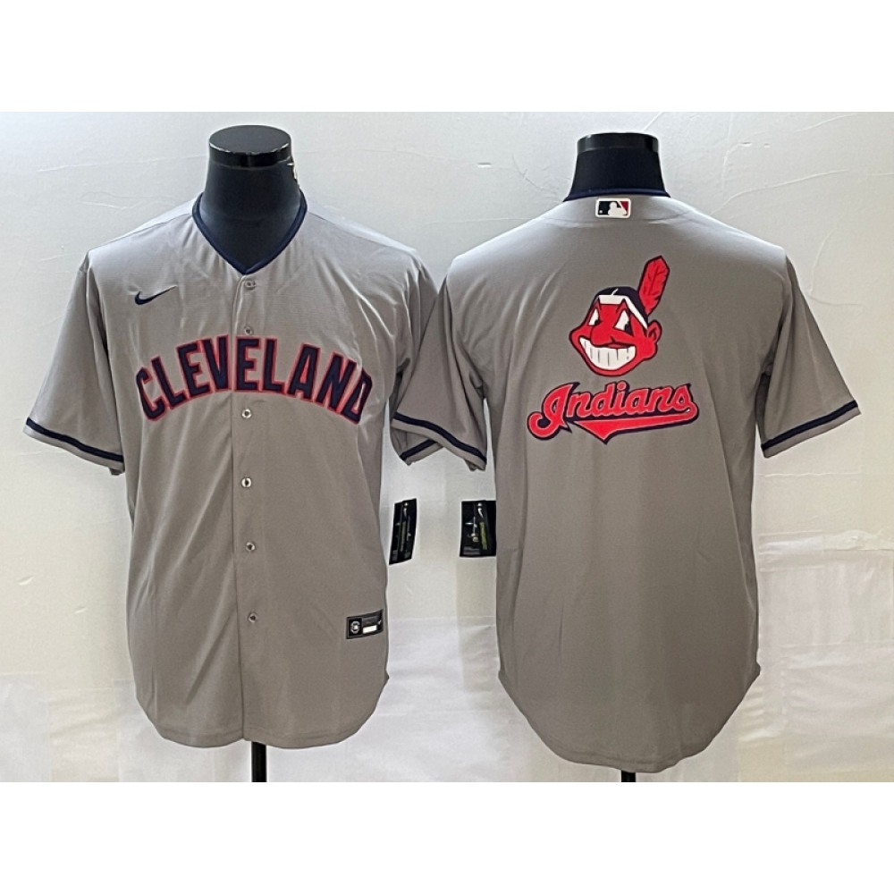 Men's Cleveland Guardians Grey Team Big Logo Cool Base Stitched Jersey