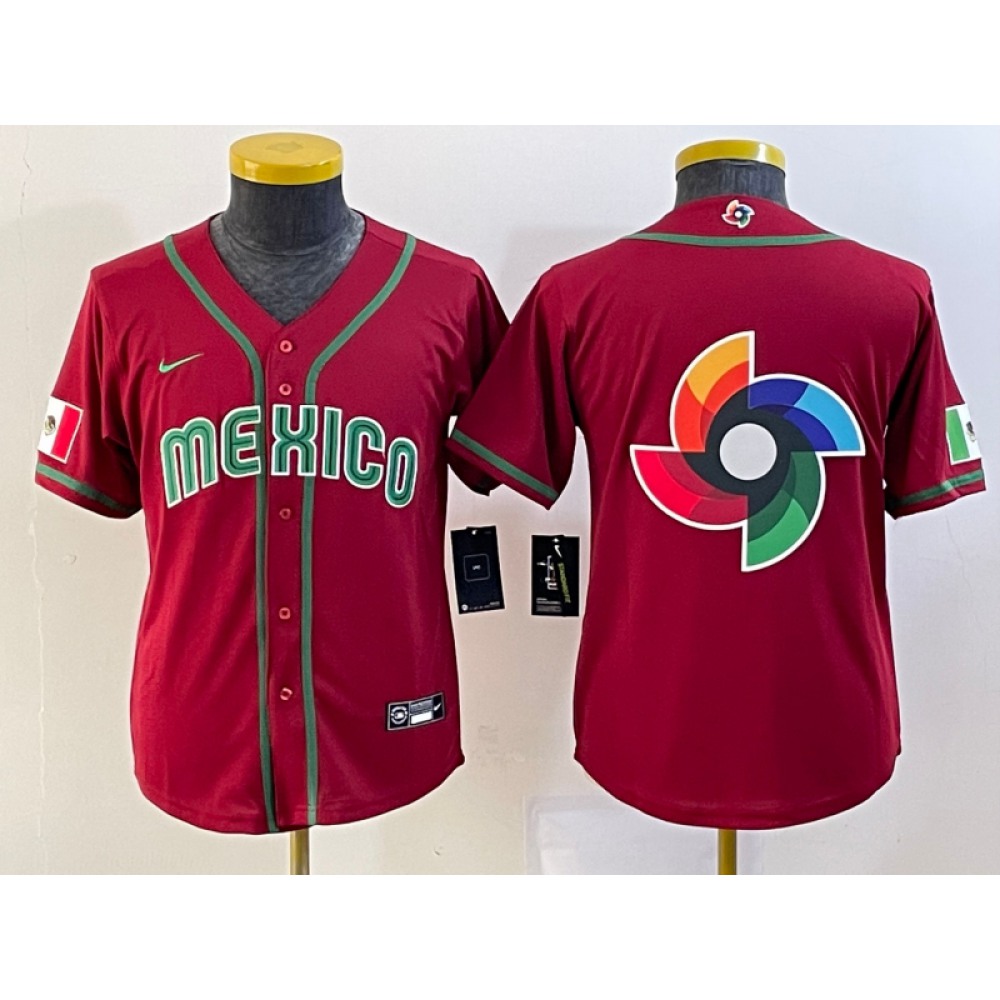 Youth Mexico Baseball 2023 Red Big Logo World Baseball Classic Stitched Jersey