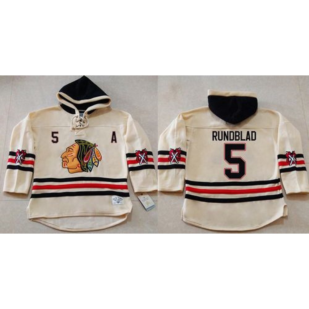 Blackhawks #5 David Rundblad Cream Heavyweight Pullover Hoodie Stitched NHL Jersey