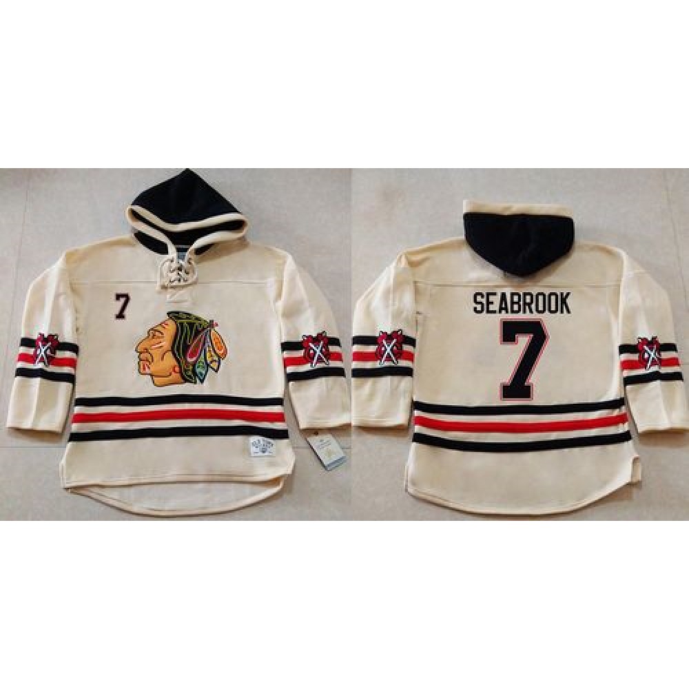 Blackhawks #7 Brent Seabrook Cream Heavyweight Pullover Hoodie Stitched NHL Jersey