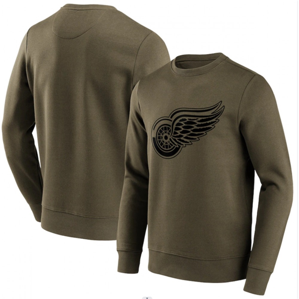 Men's Detroit Red Wings Olive Iconic Preferred Logo Graphic Crew Sweatshirt