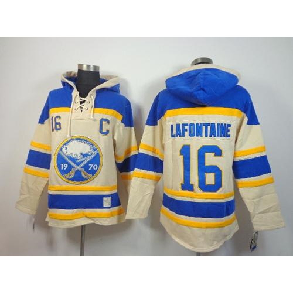 Sabres #16 Pat Lafontaine Cream Sawyer Hooded Sweatshirt Stitched NHL Jersey