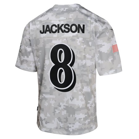 Youth Baltimore Ravens Lamar Jackson Nike Arctic Camo 2024 Salute to Service Game Jersey
