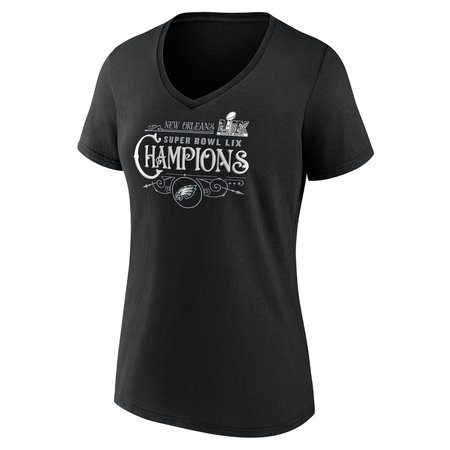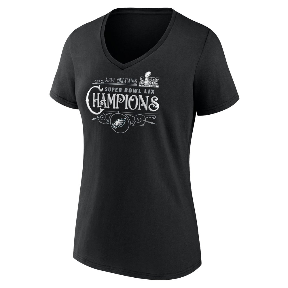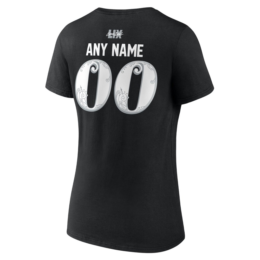Women's Philadelphia Eagles Black Super Bowl LIX Champions Custom Name & Number V-Neck T-Shirt