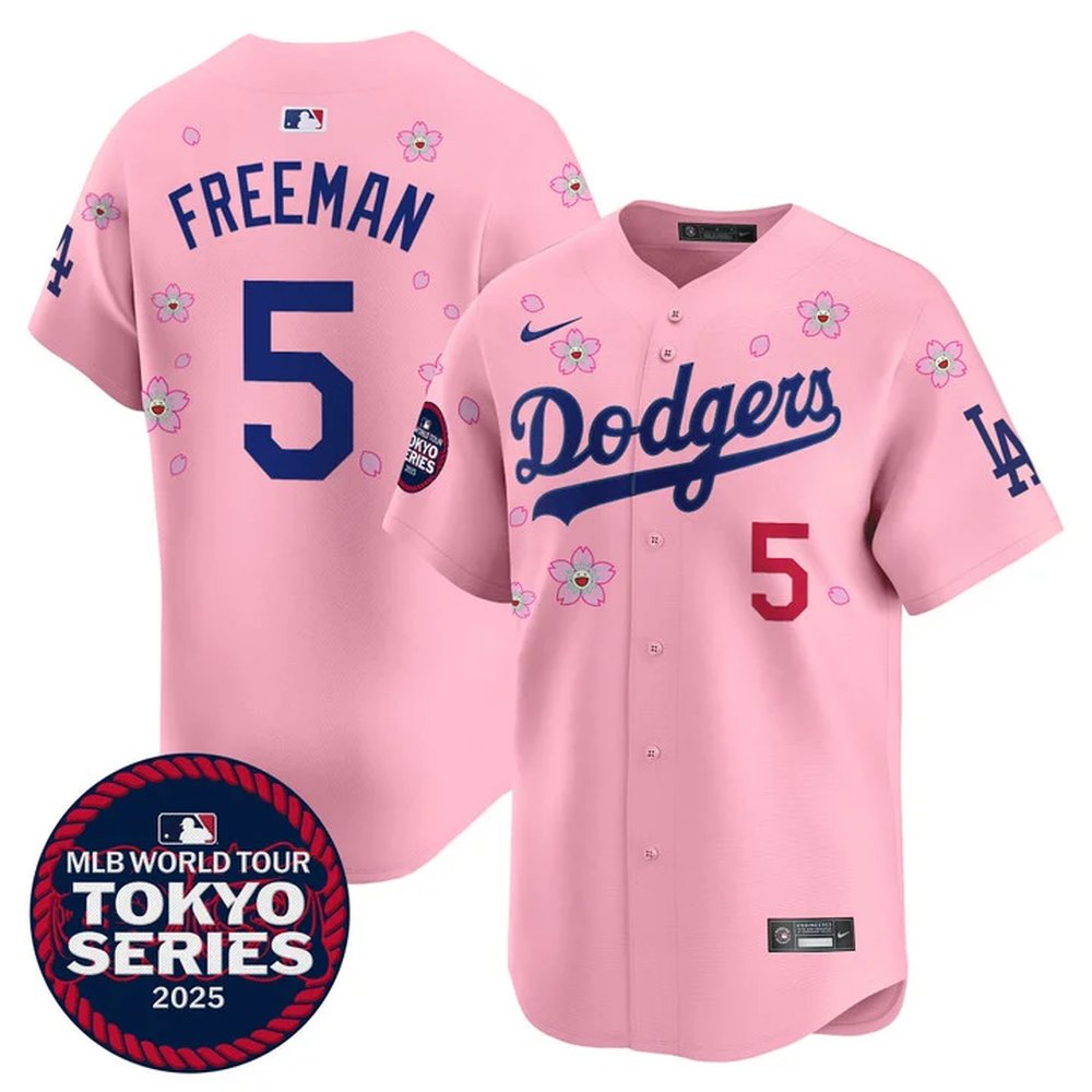 Men's Los Angeles Dodgers #5 Freddie Freeman Pink Tokyo 2025 Cool Base Stitched Baseball Jersey