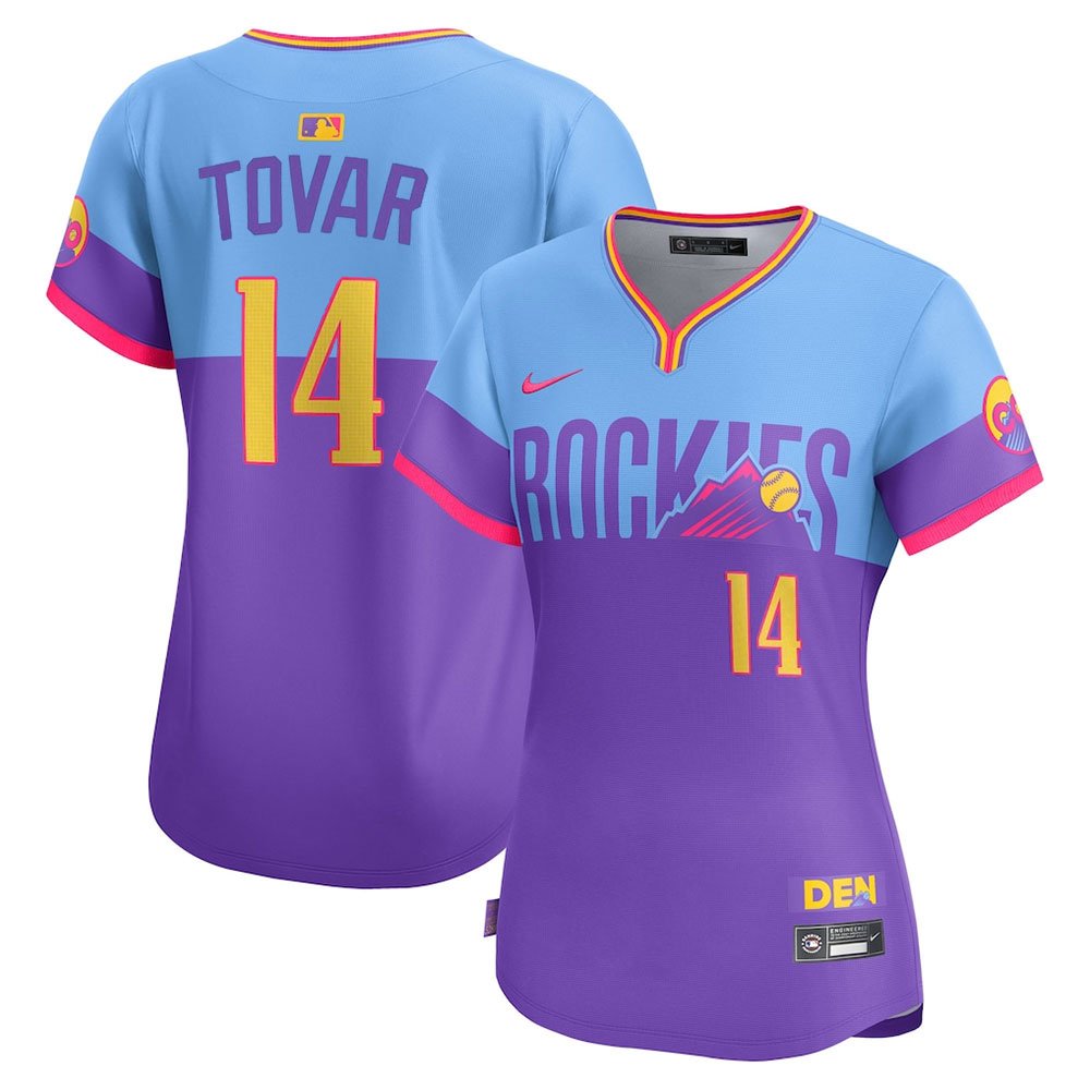 Women's Colorado Rockies #14 Ezequiel Tovar Nike Purple/Light Blue 2025 City Connect Elite Player Jersey