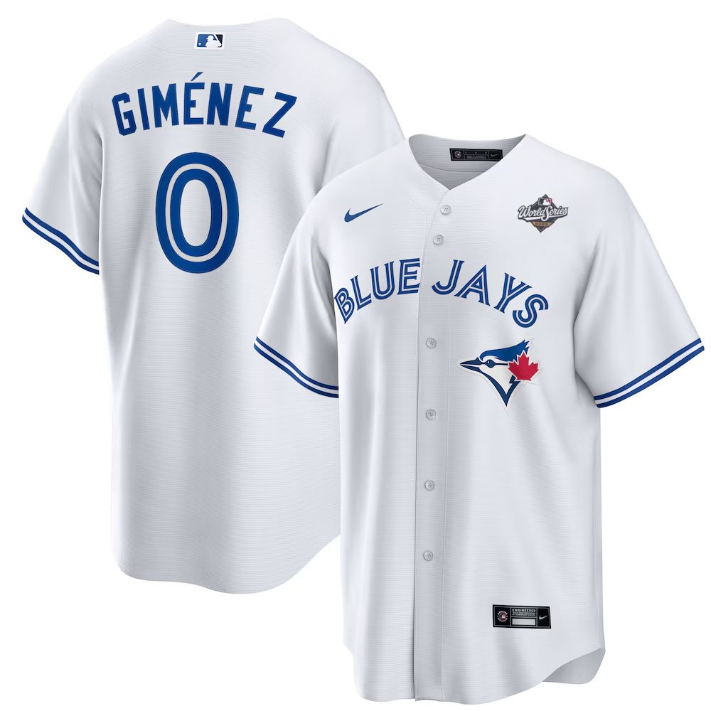 Men's Toronto Blue Jays #0 Andres Gimenez Nike 2025 World Series White Home Replica Jersey